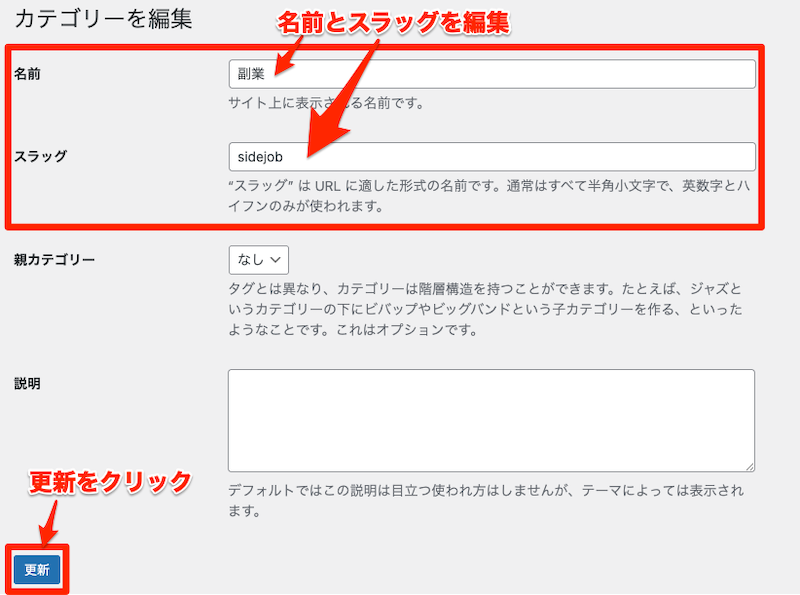 まずはこの「Uncategorized」を日本語に変更するだけでOKです。